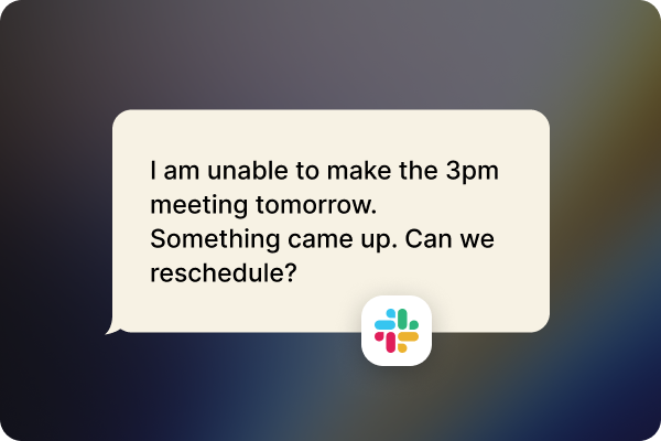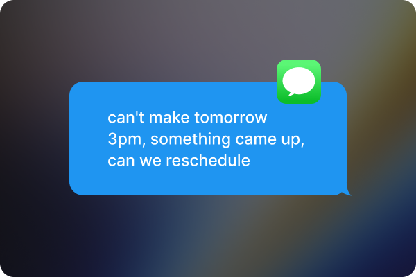 You say: "can't make tomorrow three pm something came up can we reschedule"