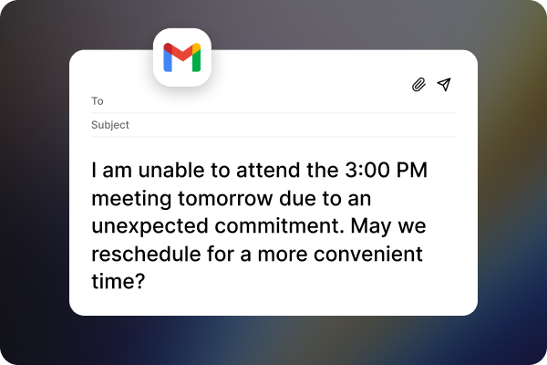 The output lands in your active app, already in the tone you set. Ready to be sent.