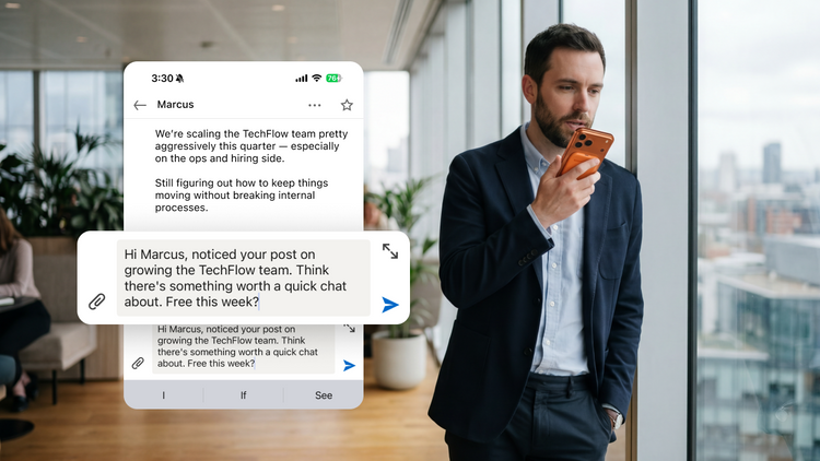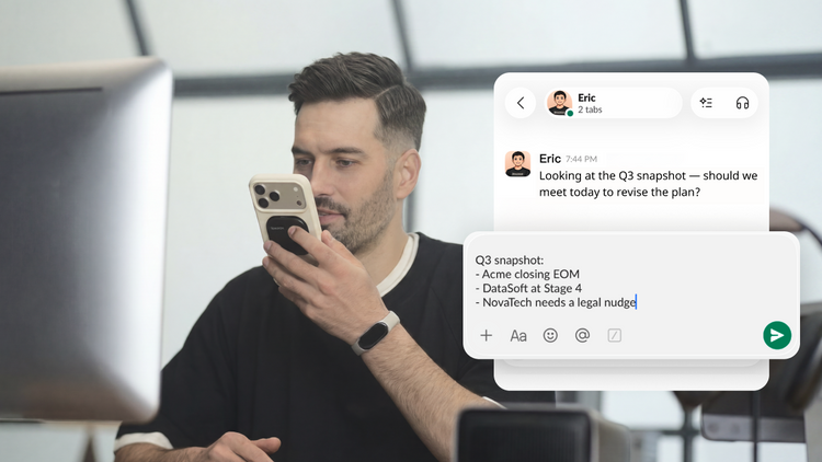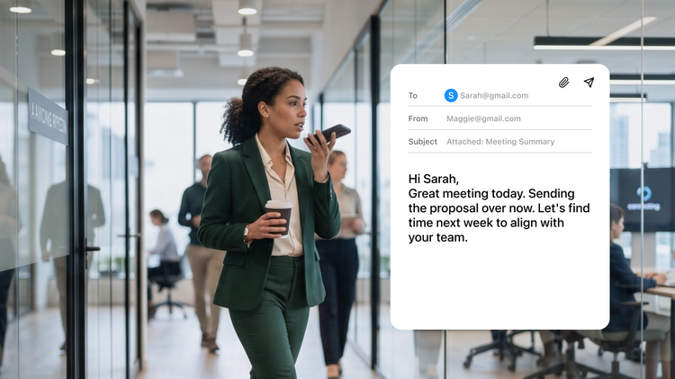 The follow-up that lands in the next ten minutes is a different email than the one you'll send tonight. The details are sharper. The energy is still in it. It reads like the conversation just happened, because it did.