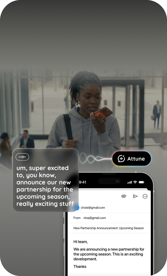 SpeakON works the moment you press. No opening an app, no switching, no extra steps. Your words arrive polished and in the right place, whatever app you're writing into. It's the only solution where the hardware and software work as one.
